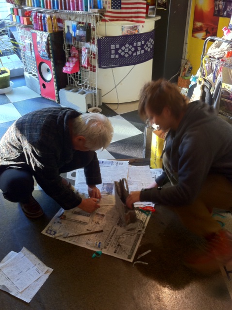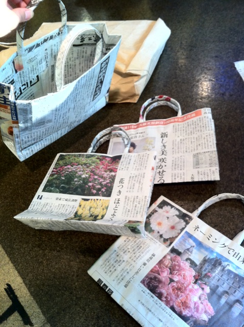 新聞紙で作る、紙袋を教えて頂きました(=´∀`)人(´∀`=)
