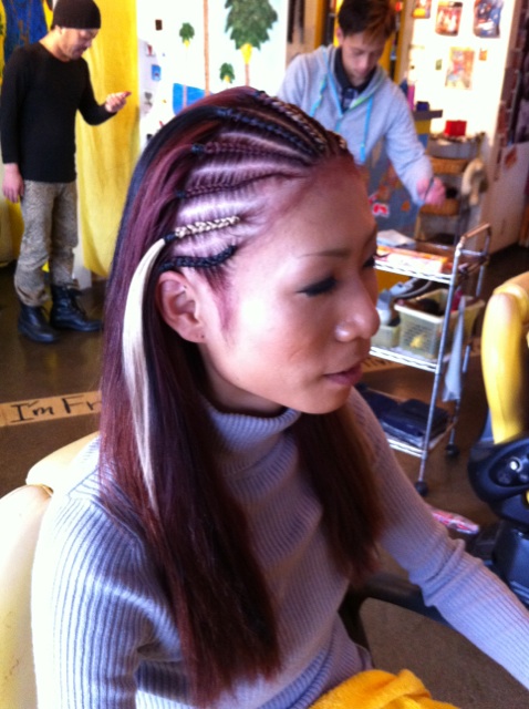 ワインレッドカラーにフロント編みです★