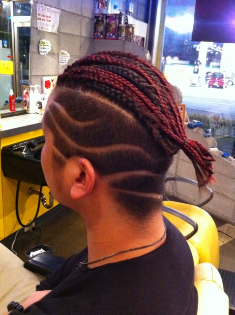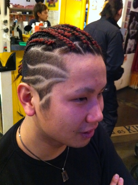 後は無理やりコーンロウに(^_-)