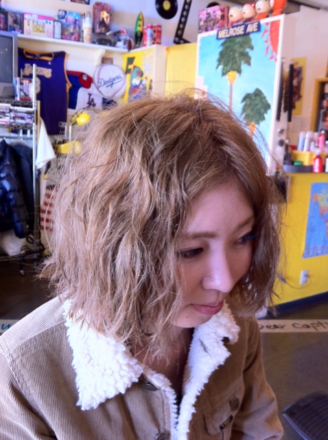 パーマはふんわり当てて、カラーは一番明るい色てアッシュでクスましてますd(^_^o)