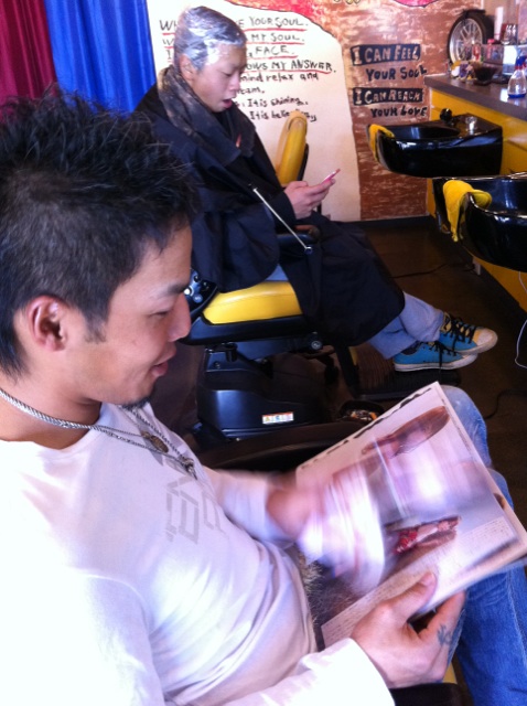 LAの男性客に大人気のフライデーを読んでニヤついてるYさん(笑)